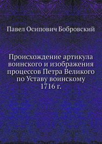 | Полное название книги | П. О. Бобровский Происхождение артикула воинского и изображения процессов Петра Великого по Уставу воинскому 1716 г |
