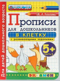 | Полное название книги | М. А. Козлова Прописи для дошкольников в клетку с развивающими заданиями 5+. Часть 1 |