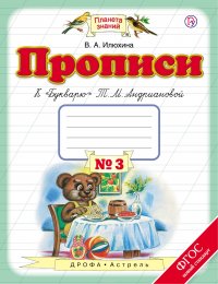 | Полное название книги | В. А. Илюхина Прописи к "Букварю" Т. М. Андриановой. 1 класс. Тетрадь № 3 |
