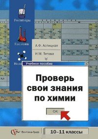 | Полное название книги | И. М. Титова, А. Ф. Аспицкая Проверь свои знания по химии: Система разноуровневых заданий для выпускников средней школы профильного уровня обучения: 10-11 классы: Учебное пособие |