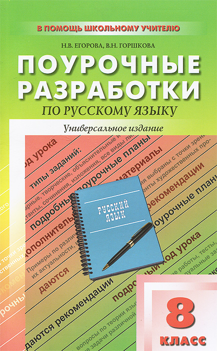 | Полное название книги | В. Н. Горшкова, Н. В. Егорова ПШУ 8 кл. Универсальные поурочные разработки по русскому языку. Егорова Н.В., Горшкова В.Н |