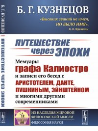 | Полное название книги | Б. Г. Кузнецов Путешествие через эпохи. Мемуары графа Калиостро и записи его бесед с Аристотелем, Данте, Пушкиным, Эйнштейном и многими другими современниками |