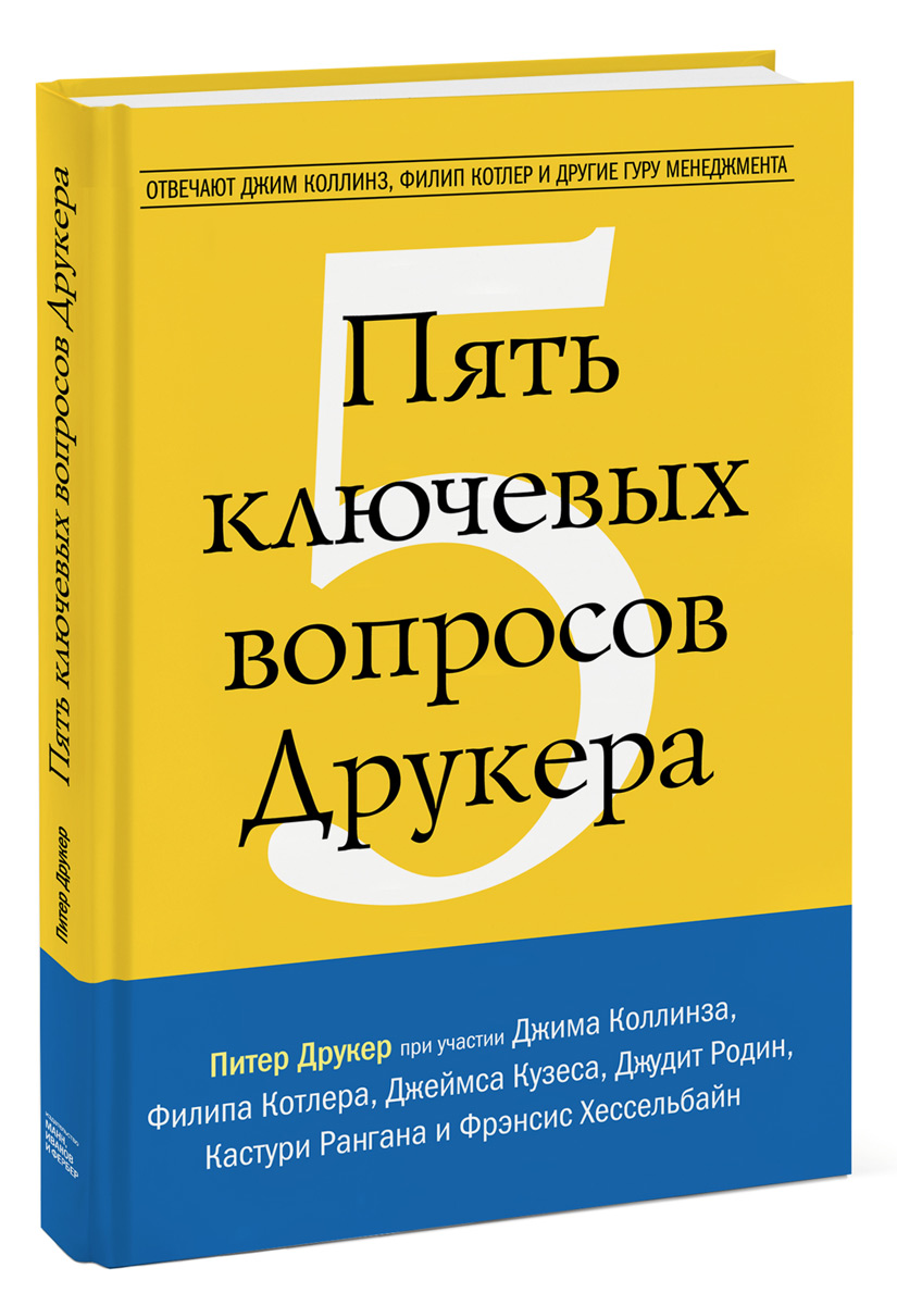 | Полное название книги | Питер Друкер Пять ключевых вопросов Друкера. Отвечают Джим Коллинз, Филип Котлер и другие гуру менеджмента |