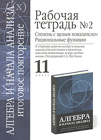 | Полное название книги | С. А. Шестаков Рабочая тетрадь №2. Степень с целым показателем. Рациональные функции. 11 класс |