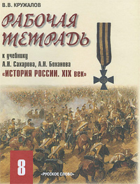 | Полное название книги | В. В. Кружалов Рабочая тетрадь к учебнику А. Н. Сахарова, А. Н. Боханова "История России. XIX век. 8 класс" |