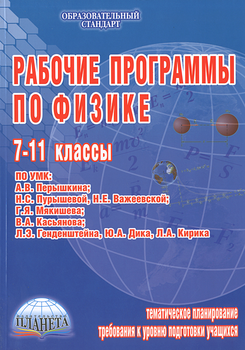 В сборнике представлены рабочие программы по физике, созданные на основе авторских программ (авторов А.В.Перышкина; Н.С.Пурышевой, Н.Е.Важеевской; Г.Я.Мякишева; В.А.Касьянова) с учетом требований Государственного образовательного стандарта.