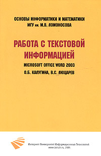 | Полное название книги | В. С. Люцарев, О. Б. Калугина Работа с текстовой информацией. Microsoft Office Word 2003 |