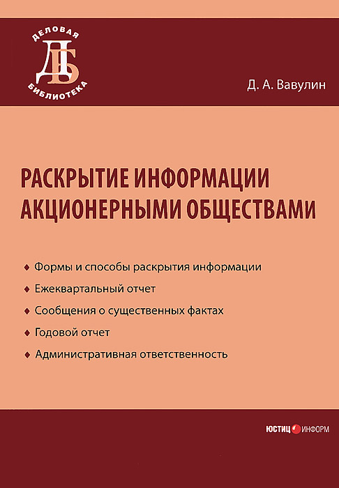 | Полное название книги | Д. А. Вавулин Раскрытие информации акционерными обществами |
