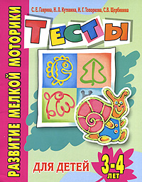| Полное название книги | С. В. Щербинина, С. Е. Гаврина, И. Г. Топоркова, Н. Л. Кутявина Развитие мелкой моторики. Тесты для детей 3-4 лет |