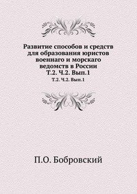 | Полное название книги | П. О. Бобровский Развитие способов и средств для образования юристов военнаго и морскаго ведомств в России |