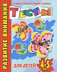 | Полное название книги | С. В. Щербинина, С. Е. Гаврина, И. Г. Топоркова, Н. Л. Кутявина Развитие внимания. Тесты для детей 4-5 лет |