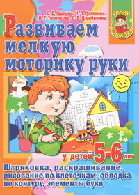 | Полное название книги | С. В. Щербинина, С. Е. Гаврина, И. Г. Топоркова, Н. Л. Кутявина Развиваем мелкую моторику руки у детей 5-6 лет. Штриховка, раскрашивание, рисование по памяти, обводка по контуру, элементы букв |