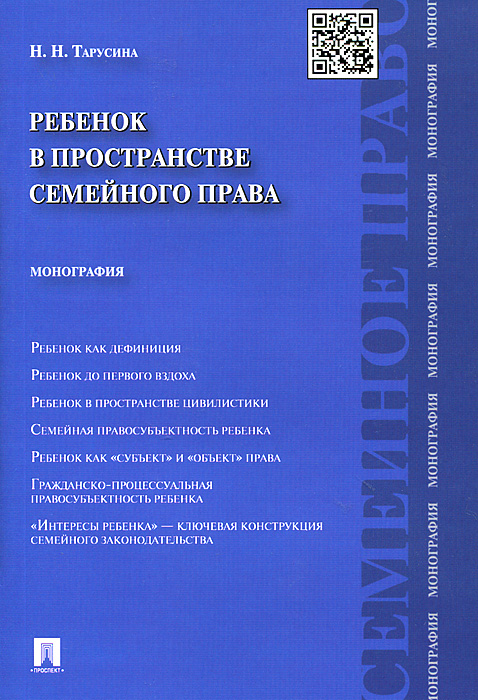 | Полное название книги | Н. Н. Тарусина Ребенок в пространстве семейного права. Монография.-М.:Проспект,2015 |