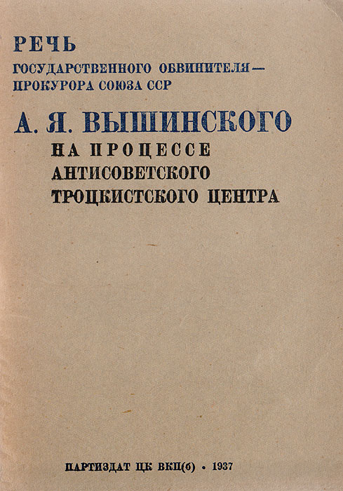 | Полное название книги | А. Я. Вышинский Речь государственного обвинителя - прокурора Союза ССР А.Я. Вышинского на процессе антисоветского троцкистского центра |