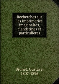 | Полное название книги | Gustave Brunet Recherches sur les imprimeries imaginaires, clandstines et particulieres |