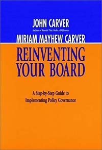 | Полное название книги | Miriam Mayhew Carver, John Carver Reinventing Your Board : A Step-by-Step Guide to Implementing Policy Governance (The Jossey-Bass Nonprofit Sector Series) |