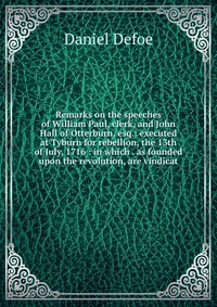 | Полное название книги | Daniel Defoe Remarks on the speeches of William Paul, clerk, and John Hall of Otterburn, esq.: executed at Tyburn for rebellion, the 13th of July, 1716 : in which . as founded upon the revolution, are vin |