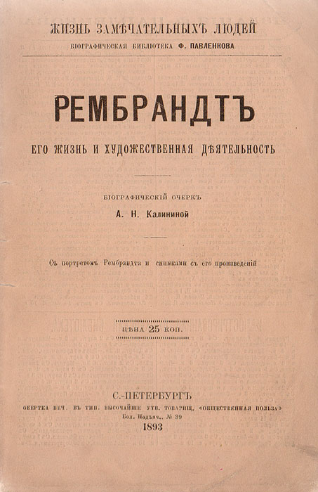 | Полное название книги | А. М. Калинина Рембрант . Его жизнь и художественная деятельность |
