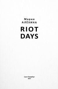 На сайте представлено только описание и выходные данные книги «Riot Days. Дни бунта Мария Алехина». Сайт не является распространителем книги. Сайт не предоставляет возможности купить, читать онлайн или скачать бесплатно книгу «Riot Days. Дни бунта Мария Алехина». Сайт предназначен для лиц старше 18 лет. Если вам не исполнилось 18 лет - незамедлительно покиньте сайт. Оставаясь на сайте вы подтвердаете, что вам исполнилось 18 лет.
