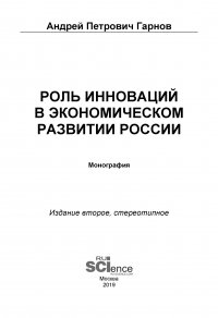| Полное название книги | Андрей Петрович Гарнов Роль инноваций в экономическом развитии России |