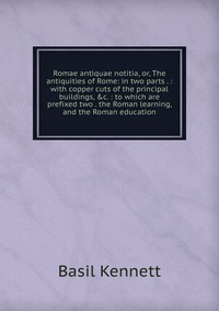 | Полное название книги | Basil Kennett Romae antiquae notitia, or, The antiquities of Rome: in two parts . : with copper cuts of the principal buildings, &c. : to which are prefixed two . the Roman learning, and the Roman educ |
