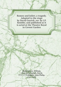 | Полное название книги | William Shakespeare Romeo and Juliet; a tragedy. Adapted to the stage by David Garrick; rev. by J.P. Kemble; and published as it is acted at the Theatre Royal in Covent Garden |