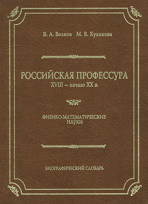 | Полное название книги | М. В. Куликова, В. А. Волков Российская профессура. VIII - начало XX в. Физико-математические науки. Биографический словарь |