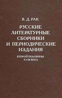| Полное название книги | В. Д. Рак Русские литературные сборники и периодические издания второй половины XVIII века |