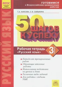 Рабочая тетрадь "50 шагов к успеху. Русский язык. 3 класс" предназначена для подготовки третьеклассников к Всероссийской проверочной работе по русскому языку. В каждой из пятидесяти работ предлагаются вопросы и задания, охватывающие 5-6 тем курса русского языка, что отличает эту тетрадь от других аналогичных изданий, построенных на повторении ранее изученного материала по тематическому принципу. В связи с тем, что во Всероссийскую проверочную работу по русскому языку включены также задания по развитию речи и работе с текстом, в предлагаемой тетради кроме тренировочных работ по русскому языку помещены работы, направленные на отработку умений по определению темы и идеи текста, составлению его плана, подбору заголовков. Тренировочные работы рассчитаны на выполнение в классе под руководством учителя на уроках русского языка и литературного чтения. Их можно также использовать для самостоятельной подготовки учащихся дома со взрослыми. В конце тетради даны обучающие итоговые работы полного цикла, максимально приближенные к реальному испытанию, которое ждет третьеклассников при выполнении Всероссийской проверочной работы по русскому языку. Тетрадь разработана в соответствии с требованиями ФГОС НОО и может использоваться при работе с любыми учебно-методическими комплектами.2-е издание. Это и многое другое вы найдете в книге Русский язык. 3 класс. Готовимся к ВПР. ФГОС (Татьяна Анатольевна Каясова, Светлана Викторовна Самыкина)