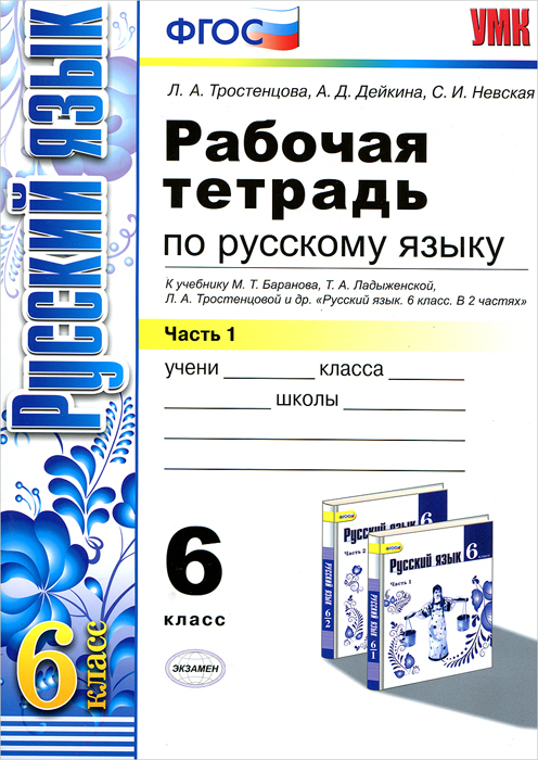 | Полное название книги | Л. А. Тростенцова, А. Д. Дейкина, С. И. Невская Русский язык. 6 класс. Рабочая тетрадь. В 2 частях. Часть 1. К учебнику М. Т. Баранова, Т. А. Ладыженской, Л. А. Тростенцовой и др. "Русский язык. 6 класс. Учебник. В 2 частях" |