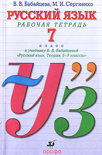 | Полное название книги | В. В. Бабайцева, М. И. Сергиенко Русский язык. 7 класс. Рабочая тетрадь к учебнику В. В. Бабайцевой "Русский язык. Теория. 5-9 классы" |