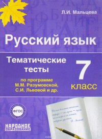 | Полное название книги | Л. И. Мальцева Русский язык 7 класс. Тематические тесты по программам Разумовской и Львовой |