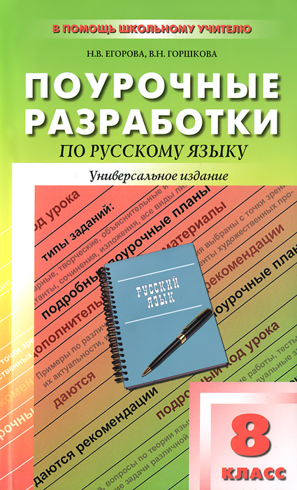| Полное название книги | В. Н. Горшкова, Н. В. Егорова Русский язык. 8 класс. Поурочные разработки |