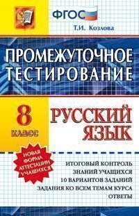| Полное название книги | Т. И. Козлова Русский язык. 8 класс. Промежуточное тестирование |