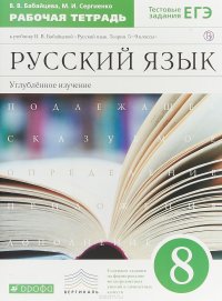 | Полное название книги | В. В. Бабайцева, М. И. Сергиенко Русский язык. 8 класс. Рабочая тетрадь к учебнику В. В. Бабайцевой "Русский язык. Теория. 5-9 классы". Углубленное изучение.. Русский язык. 8 класс. Рабочая тетрадь |