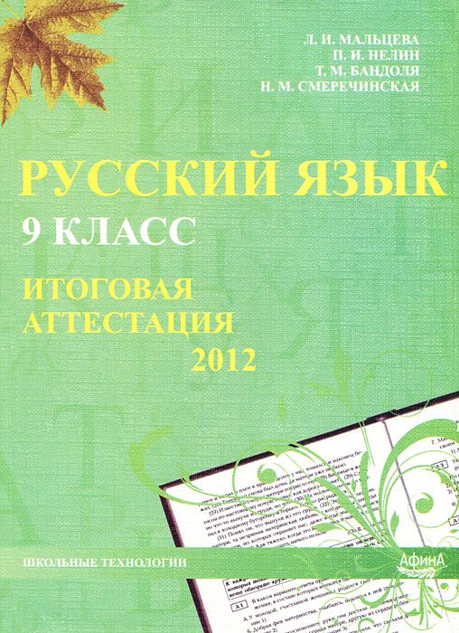 | Полное название книги | Л. И. Мальцева, Т. М. Бандоля, Н. М. Смеречинская, П. И. Нелин Русский язык. 9 класс. Итоговая аттестация 2012 |