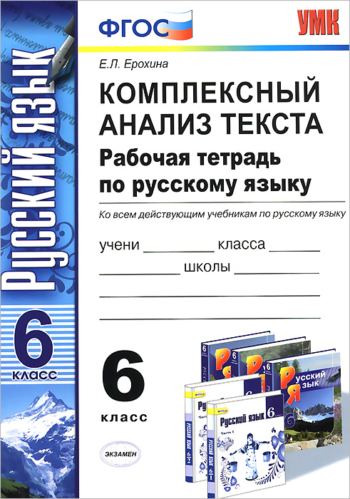 | Полное название книги | Е. Л. Ерохина Русский язык. Комплексный анализ текста. 6 класс. Рабочая тетрадь |