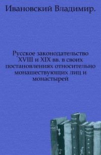 | Полное название книги | В. Ивановский Русское законодательство XVIII и XIX вв. в своих постановлениях относительно монашествующих лиц и монастырей |