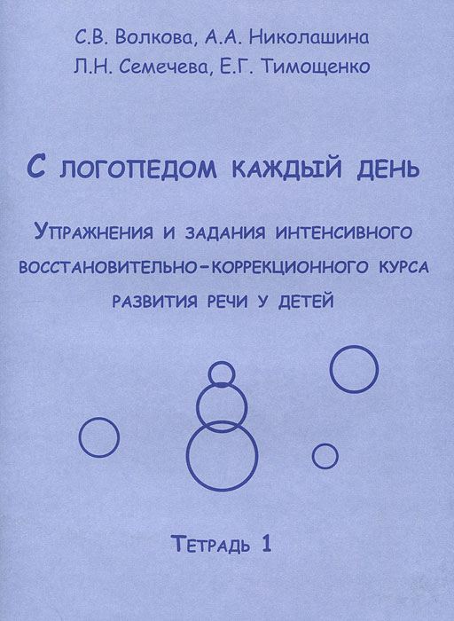 | Полное название книги | С. В. Волкова, А. А. Николашина, Е. Г. Тимощенко, Л. Н. Семечева С логопедом каждый день. Упражнения и задания интенсивного восстановительно-коррекционного развития речи у детей. Тетрадь 1 |