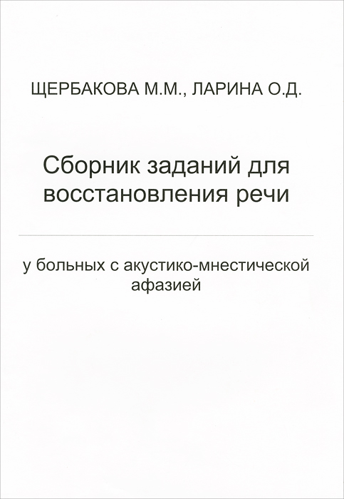 | Полное название книги | М. М. Щербакова, О. Д. Ларина Сборник заданий для восстановления речи у больных с акустико-мнестической афазией |