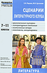 | Полное название книги | М. И. Цуканова, Е. Н. Перова Сценарии литературного клуба: 7-11 классы: Оригинальные сценарии; Литературные гостиные; Поэтические вечера и др.: Золотой век русской поэзии; Проза XIX-XX вв.; Поэзия Серебряного века и др |