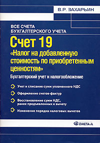 | Полное название книги | В. Р. Захарьин Счет 19 "Налог на добавленную стоимость по приобретенным ценностям". Бухгалтерский учет и налогообложение |