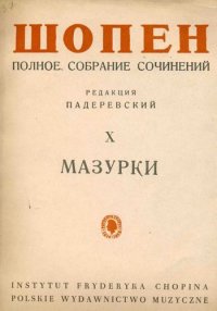 | Полное название книги | Ф. Шопен Шопен Ф. Мазурки. Полное собрание сочинений. Том X. Редакция И. Падеревского |