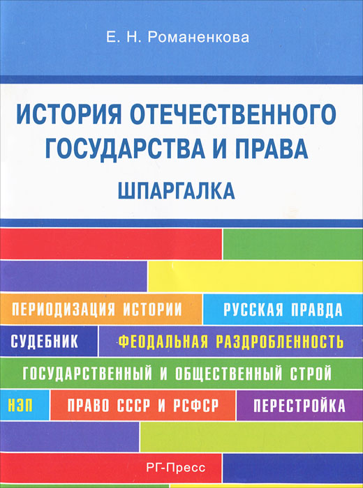 | Полное название книги | Е. Н. Романенкова Шпаргалка по истории отечественного государства и права |