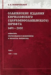 | Полное название книги | Е. Л. Немировский Славянские издания кирилловского (церковнославянского) шрифта. 1491-2000. Инвентарь сохранившихся экземпляров и указатель литературы. Том 1. 1491-1550 |