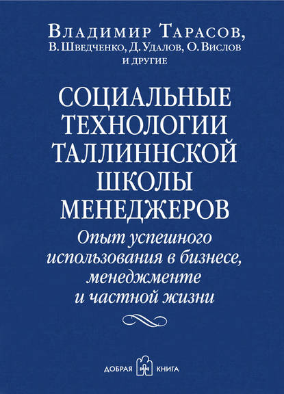 | Полное название книги | В. В. Шведченко, Владимир Константинович Тарасов, Д. В. Удалов,, О. В. Вислов Социальные технологии Таллиннской школы менеджеров. Опыт успешного использования в бизнесе, менеджменте и частной жизни |