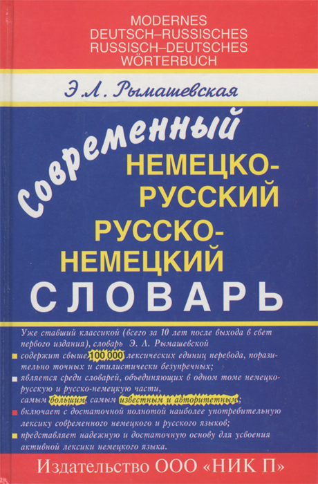 | Полное название книги | Э. Л. Рымашевская Современный немецко-русский и русско-немецкий словарь / Moderne Deutsch-Russisch: Russisch-Deutsch Wоrterbuch |