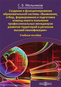 | Полное название книги | С. Б. Мельников Создание и функционирование образовательной системы [Выявление, отбор, формирование и подготовка команд нового поколения профессиональных менеджеров развития территорий и регионов высшей квал |