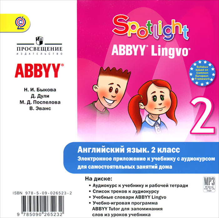 - Учебно-игровая программа ABBYY Tutor для запоминания слов из уроков учебника. Это и многое другое вы найдете в книге Spotlight 2 / Английский язык. 2 класс (аудиокурс MP3) (Н. И. Быкова, Д. Дули, М. Д. Поспелова, В. Эванс)