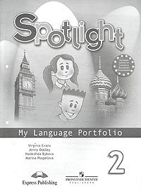 In practice, "Language Portfolios" may include a project or other examples of written work, computer diskettes (with some work or drawings completed inside or outside the class), video cassettes (with your favourite story or with performances of songs, school plays, etc), certificates, reports from your teachers, or even a collection of objects or pictures. Это и многое другое вы найдете в книге Spotlight 2: My Language Portfolio / Английский язык. Языковой портфель. 2 класс (Вирджиния Эванс, Дженни Дули, Надежда Быкова, Марина Поспелова)